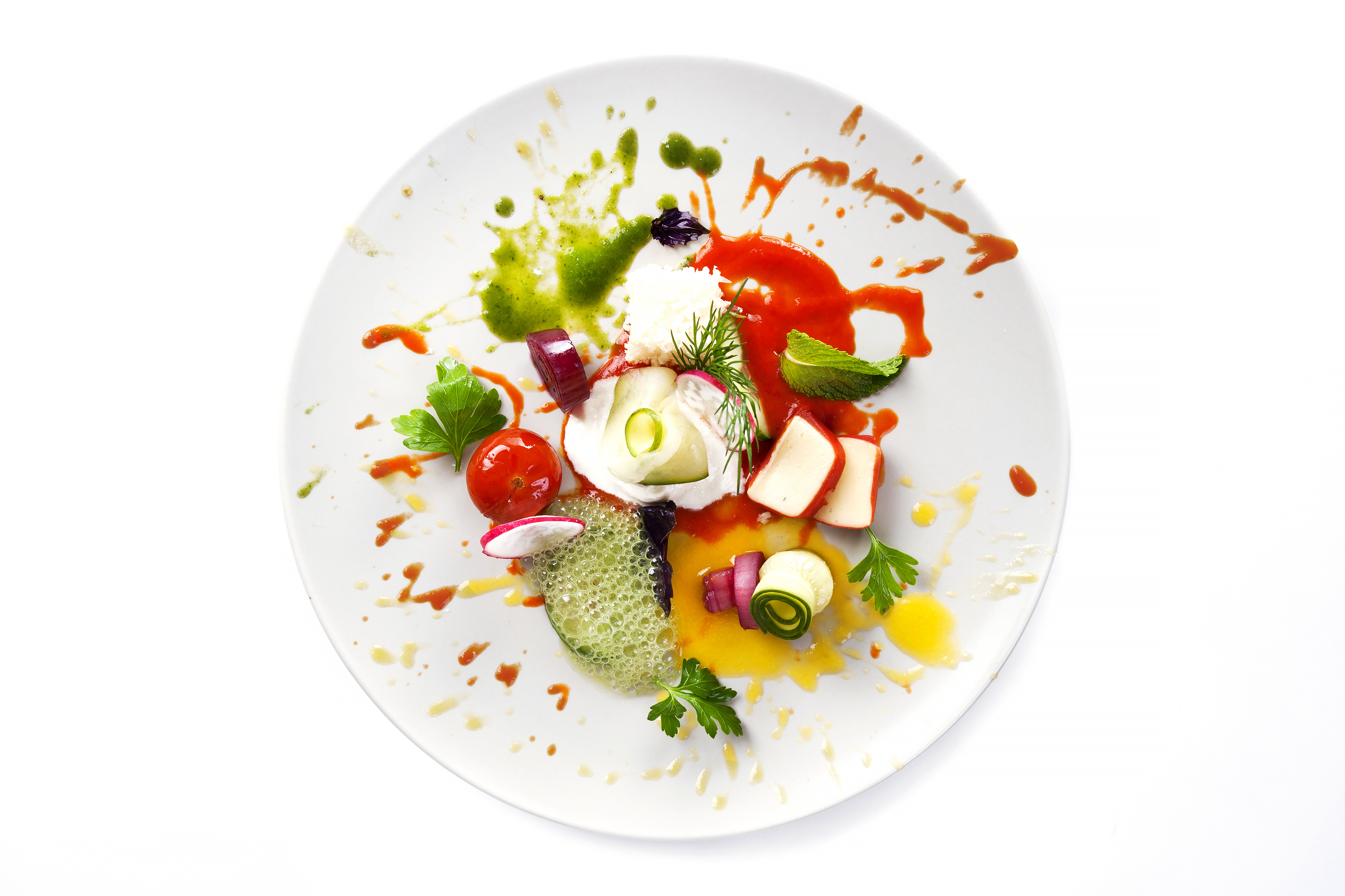 Espuma de queso con ensalada tibia