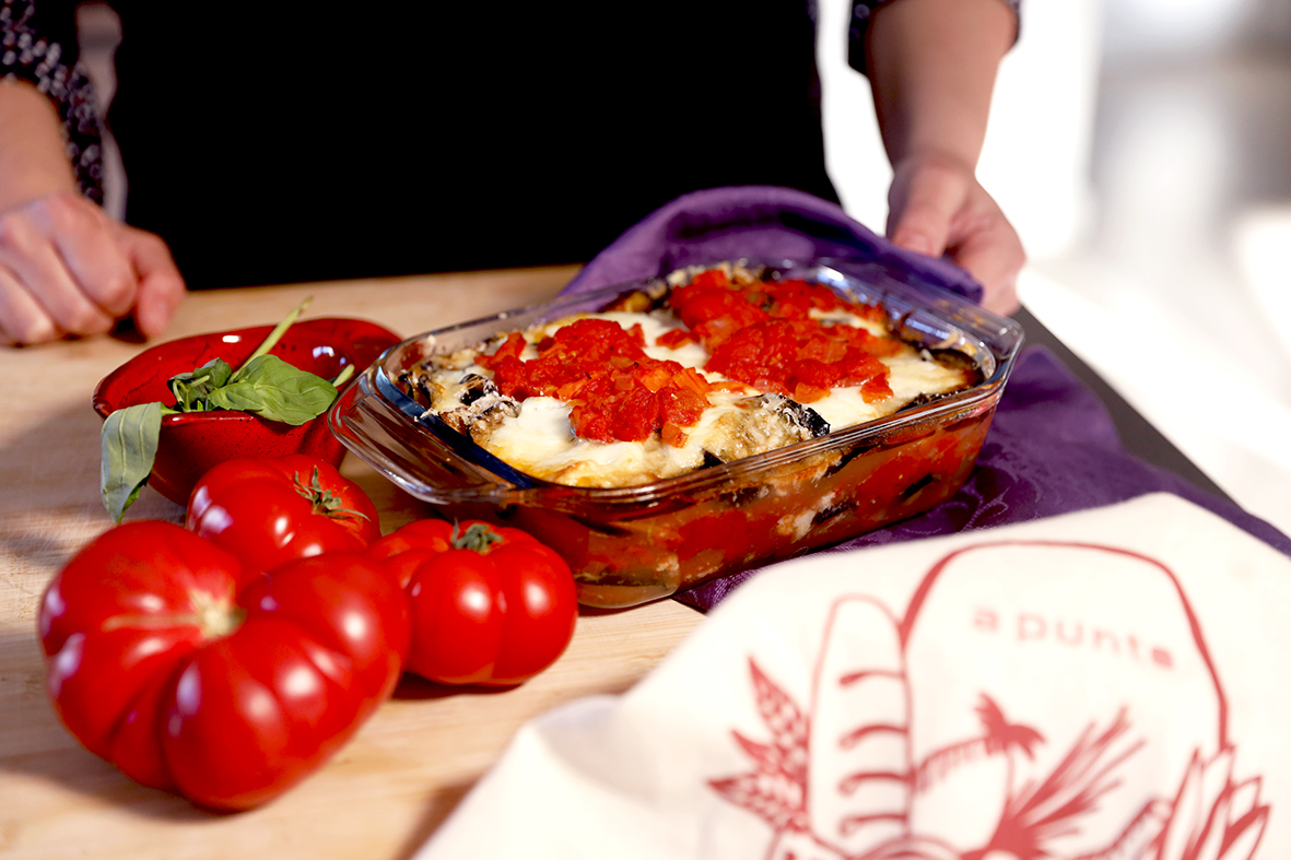 El montaje de este plato en capas de berenjenas recordaba a las láminas de las persianas de aquella época, que se llamaban “parmiciane”.