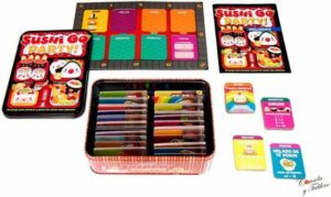 Contiene: 20 Moldes de Cupcakes, 13 Platos, 60 Cartas de Encargo, 1 Tarjeta de Logros, 1 Reloj de Arena de 7 minutos y 1 Reglamento.