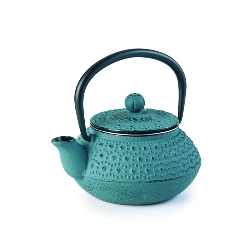 TETERA HIERRO FUNDIDO 300ML La tetera tiene las siguientes características:-Capacidad de 300ml-Fabricada en hierro fundido,-Mantiene el té caliente durante un largo tiempo-Incluye filtro de acero inoxidable e interior esmaltado-No es apta para lavar en lavavajillas, hacero a mano y a…