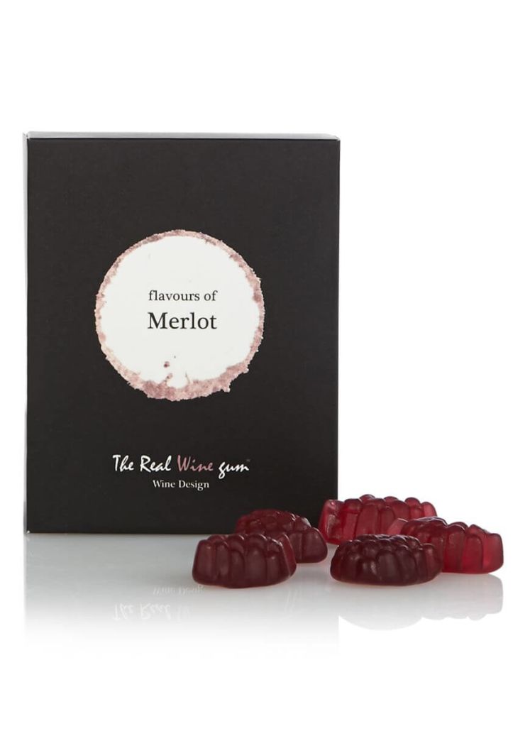 Gominolas de vino comestibles sabor Merlot tinto.