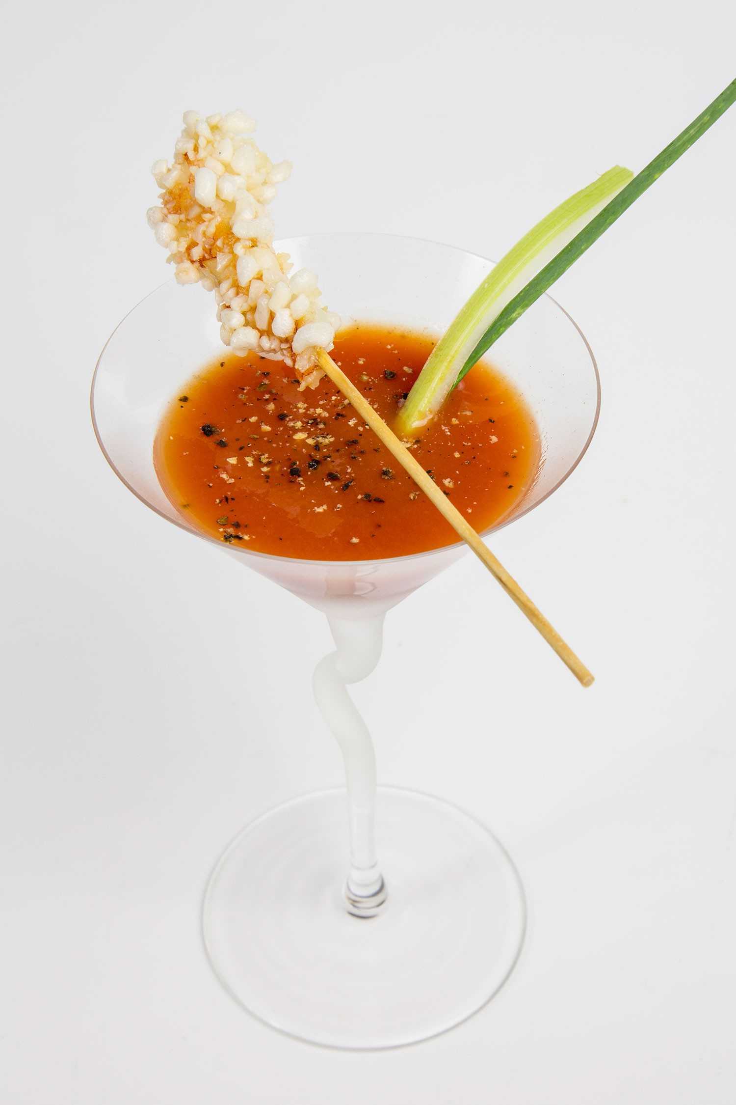 Bloody mary de tomates cherry con gelatina de vodka